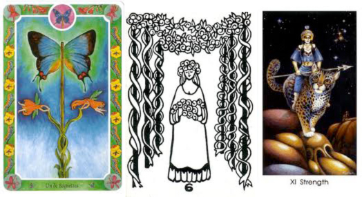 Il y a tout un tas de tarots qui ne représentent pas des personnages en train d’agir (bien que tous les tarots ou presque aient été inspirés du tarot de Marseille) car pour ce genre de tirages on ne décrit pas l’aspect symbolique de tout ce que nous voyons sur la carte mais imaginons les paroles, actions des personnages de la carte