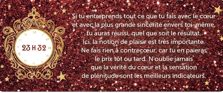 Cet oracle intuitif et magique rassemble les heures miroirs, doubles ou triples qui vous délivreront des guidances lumineuses pour une meilleure compréhension de vous-même et de votre avenir.